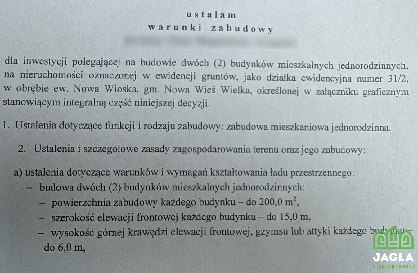 Działka budowlana Nowa Wioska gm. Nowa Wieś Wielka